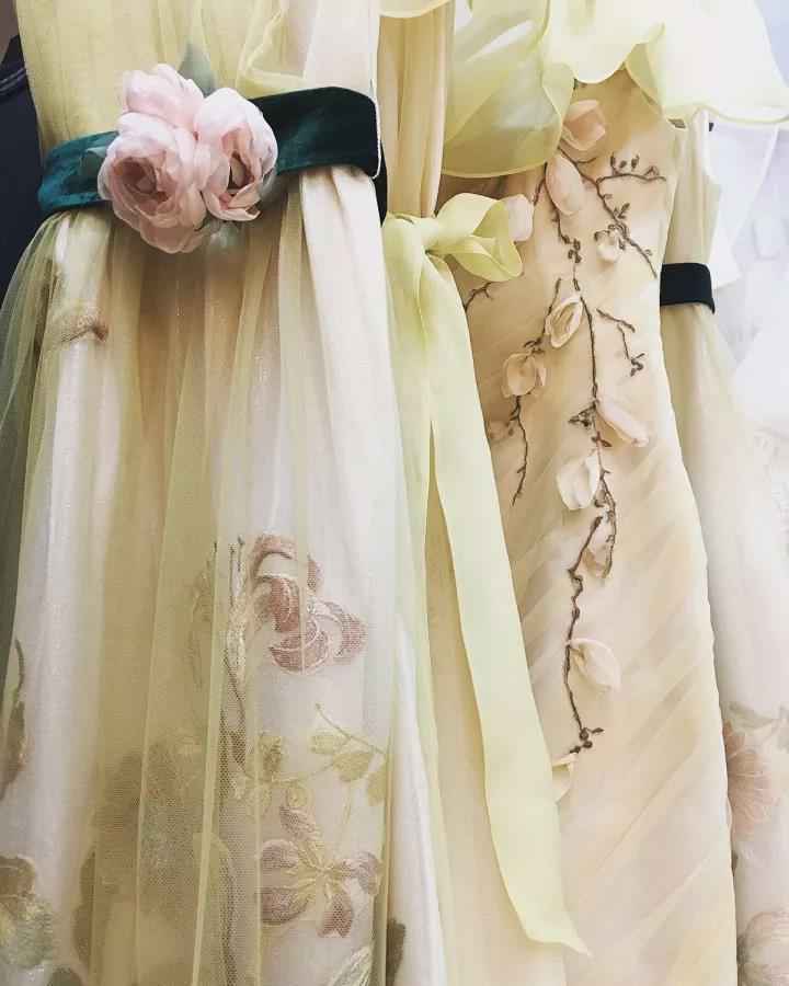 罗:在接到为中华小姐环球大赛设计礼服的时候,我们觉得挺荣幸,我觉得这又是一次全新的挑战和创作经历。我在想整个画面的时候就是12位佳丽在台上,背景是一幅非常壮丽美好的山水画的感觉。于是我们把桃花赋、山水青、玉兰颂演绎出来,这都是中国东方文化非常美好的一部分。这次参赛的佳丽们都是90后,是非常年轻、青春的女孩子。而我们的小礼服又比较仙,这个仙就是一种极致的美好。我希望在她们最年轻的时候,花开当珍惜,可以把最美好的系列让她们展现出来。我们的服装就是因为非常有灵性所以很美,能够把女孩子的独特的美丽激发出来。而在工艺上也非常有特点,包括花位,面料的运用,很能修饰脸部,衬托肤色,让她们走动的时候能有那种灵动的美感,有比较多的层次。我也很期待这次华姐的盛会。